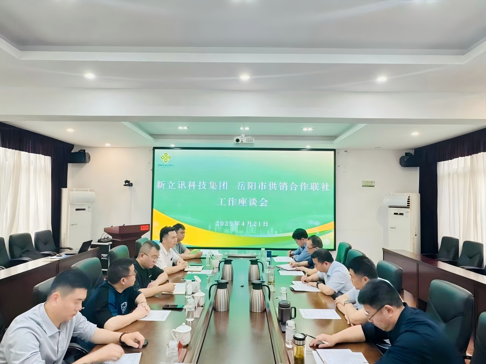 2025年4月21日,岳陽市供銷合作聯(lián)社&新立訊科技集團(tuán)“華中農(nóng)產(chǎn)品交易中心工作座談會(huì)”在岳陽市供銷合作聯(lián)社召開。岳陽市社黨委書記、理事會(huì)主任向風(fēng)行,市社黨委副書記、監(jiān)事會(huì)主任羅海,市社黨委委員、副主任周傳龍、鄒變龍、周傲文,岳陽農(nóng)發(fā)集團(tuán)總工程師李政,新立訊科技集團(tuán)董事長(兼青海、華東、川藏交易中心董事長)毛霖等與會(huì)嘉賓出席并參與座談。