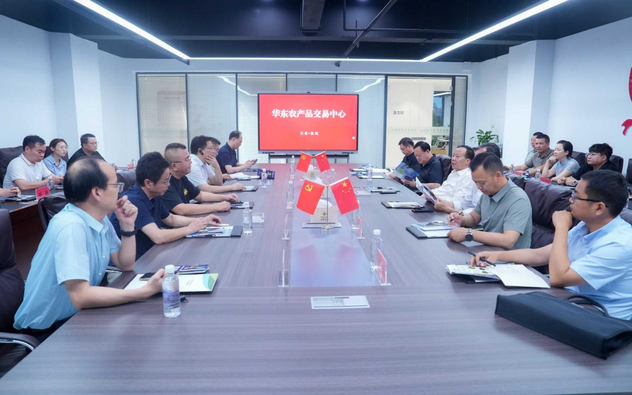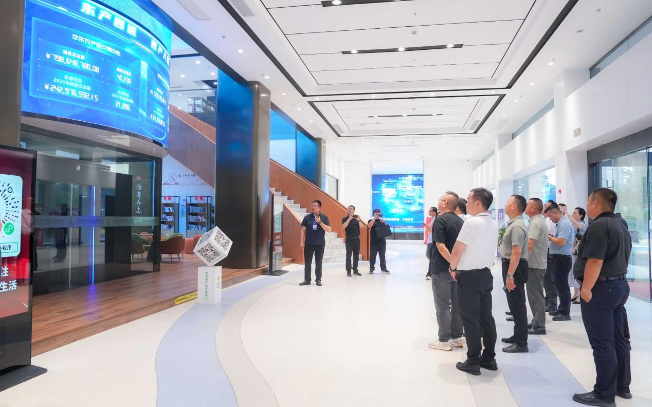 2025年9月17日,新疆維吾爾自治區供銷合作總社黨組書記、理事會主任張鈺祥,伊犁州供銷合作社黨委書記、監事會主任秦嶺一行在鹽城市政府辦公室副主任施興華、江蘇省供銷合作總社發展規劃處副處長王洋、鹽城供銷合作總社副主任沙附生的陪同下,蒞臨華東農產品交易中心實地參觀調研,華東交易中心董事長毛霖(兼新立訊科技集團董事長)攜在家管理層熱情接待。