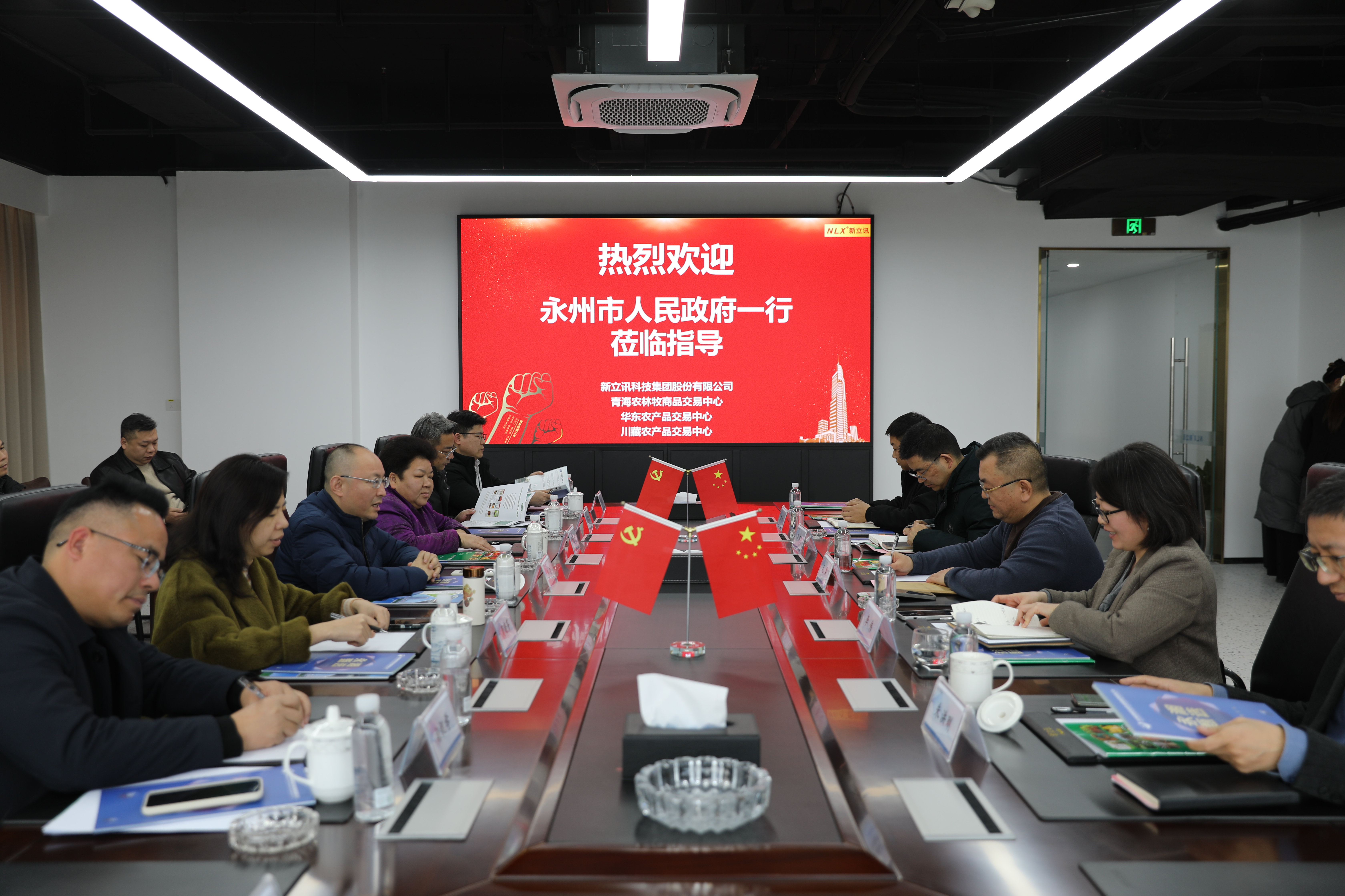 2026年1月27日,永州市人民政府副市長李欽,永州市農業(yè)農村局局長唐慧云,永州市商務局局長周曉芬,永州市港發(fā)集團供應鏈公司董事長陳震源,永州市農業(yè)綜合服務中心主任楊祝學及永州商會副會長魏世喜等調研新立訊總部。新立訊科技集團董事長(兼青海、華東、川藏農產(chǎn)品交易中心董事長)毛霖,常務副總經(jīng)理李偉及集團農產(chǎn)業(yè)互聯(lián)網(wǎng)團隊陪同調研。