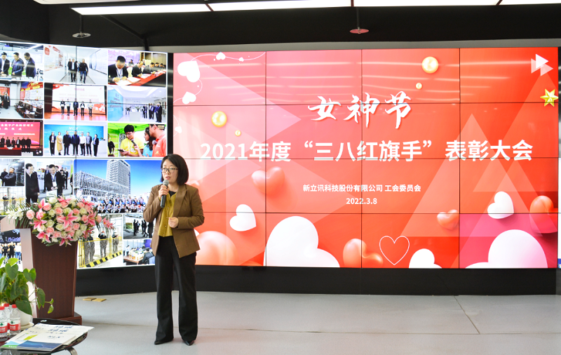 為豐富新立訊女職工的文化生活,表彰先進,增強公司凝聚力,在第112三八國際勞動婦女節來臨之際,新立訊黨支部及工會委員會在總部隆重召開三八國際婦女節表彰大會,大會由新立訊監事會主席、工會主席王宗蘭主持。