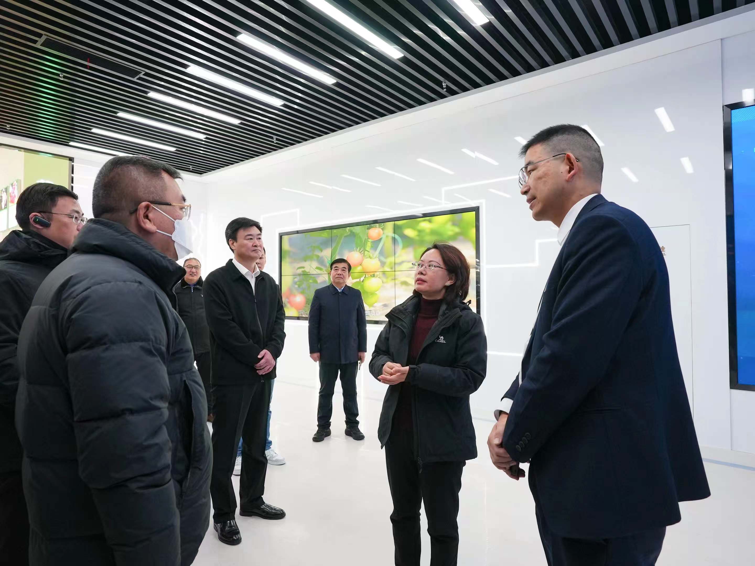 在調研過程中,毛霖匯報交易中心建設與試運營情況,引導大家參觀交易中心,包含數據魔方(超算中心)、數字農業數據展區、華東農業AI數字人對話區、熱力算法銷售中心、5G物聯網接入專區、蘇青協作示范長廊展區、鹽之有味(1+9+N)專區等等。自9月底試運營以來,入駐“東部優品”平臺企業已超過300家,SKU超過10000+,營業銷售超過3000萬+。