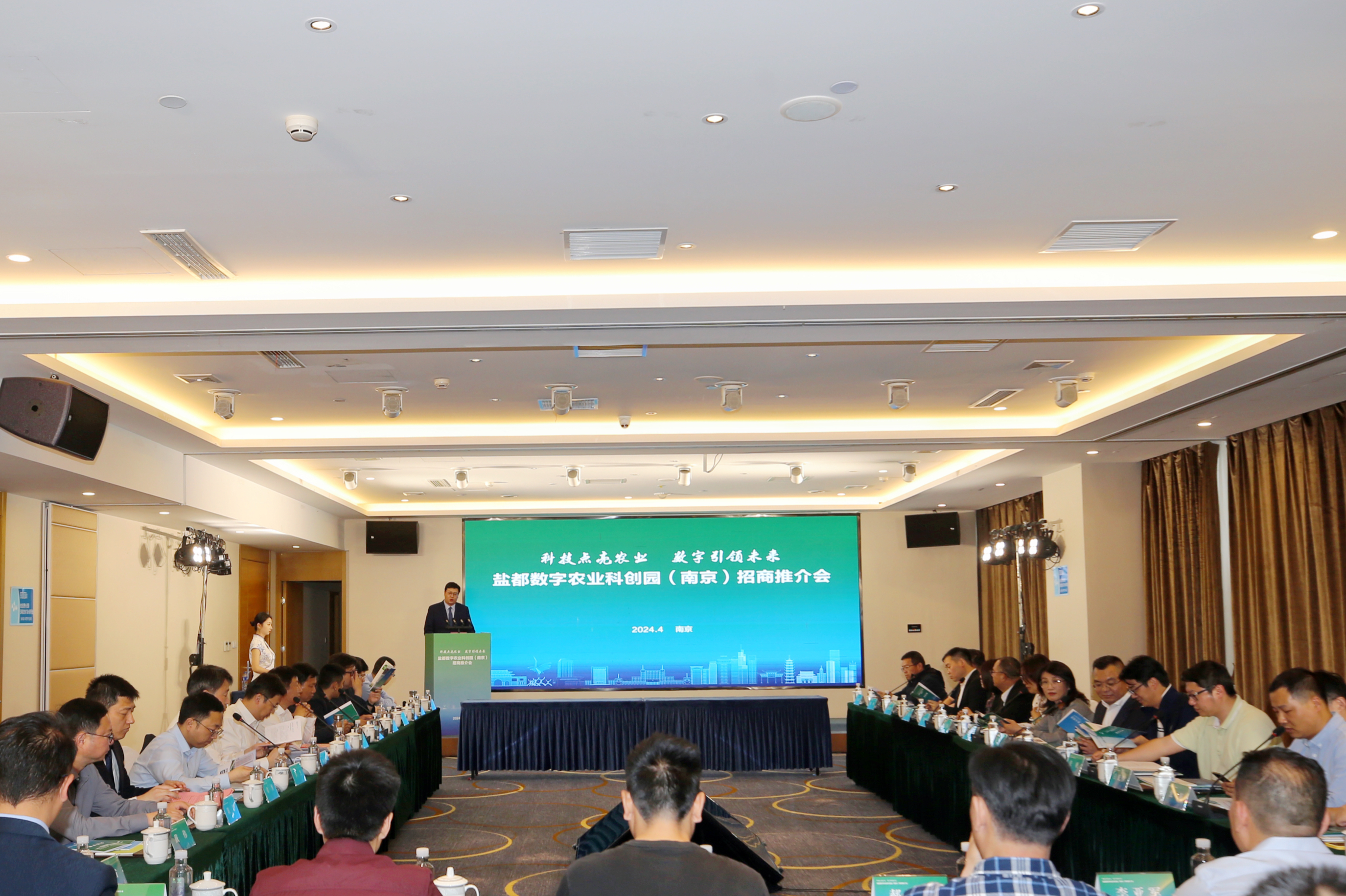2024年4月25日,“科技點亮農業(yè)、數字引領未來”鹽都數字農業(yè)科創(chuàng)園(南京)招商推介會在南京雨花錦江都城酒店召開。鹽都區(qū)人民政府副區(qū)長孫高明,鹽都區(qū)農業(yè)農村局局長劉志貴,鹽都區(qū)供銷合作社黨委書記、主任吉連生,鹽都區(qū)國控集團(鮮之都集團)董事長李杰,鹽都區(qū)鹽瀆街道黨委書記蔣國興,鹽瀆街道黨委副書記徐博,南京郵電大學高性能研究所所長、博士生導師季一木教授,浙江大學海洋學院博士生導師張帆教授,新立訊科技集團董事長(兼青海、華東交易中心董事長)毛霖,江蘇印加新能源科技股份公司董事長毛海娟,華東農產品交易中心副總經理楊慶慶,中山沃通電子科技公司董事長王德勝,深圳朗道智通(農業(yè)機器人)技術總監(jiān)何灝,農芯(南京)智慧農業(yè)研究院院長吳文彪等企業(yè)代表、專家及嘉賓60余人出席參會。